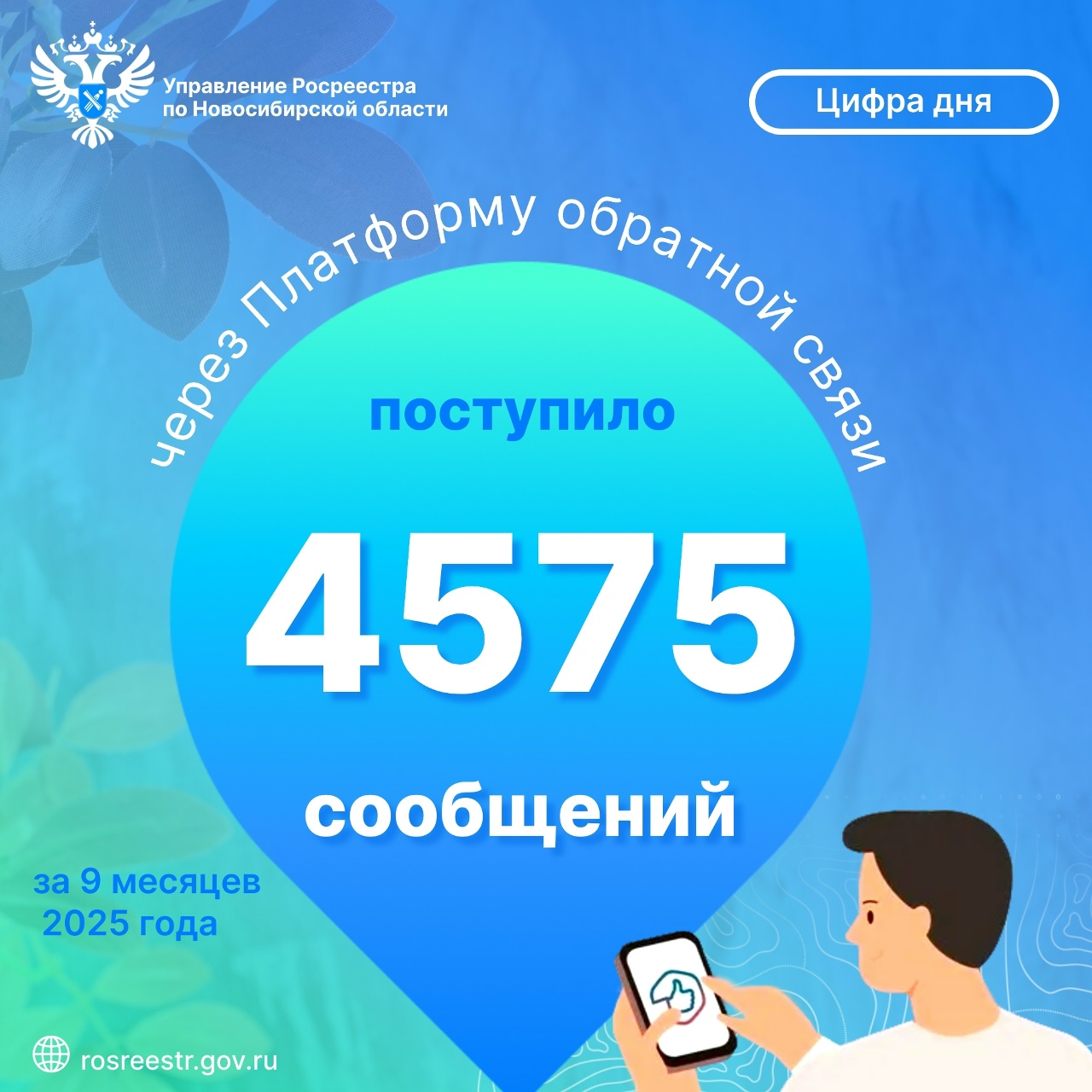 За 9 месяцев 2025 года в Управление Росреестра по Новосибирской области поступило 4575 сообщений.