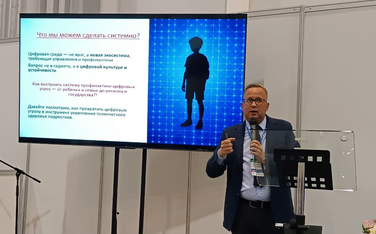 Главный внештатный детский специалист министерства здравоохранения Новосибирской области по гигиене детей и подростков, профилактической медицине, медицинской помощи в образовательных организациях Андрей Фунтиков представил доклад о воздействии информационного потребления на подрастающее поколение.
