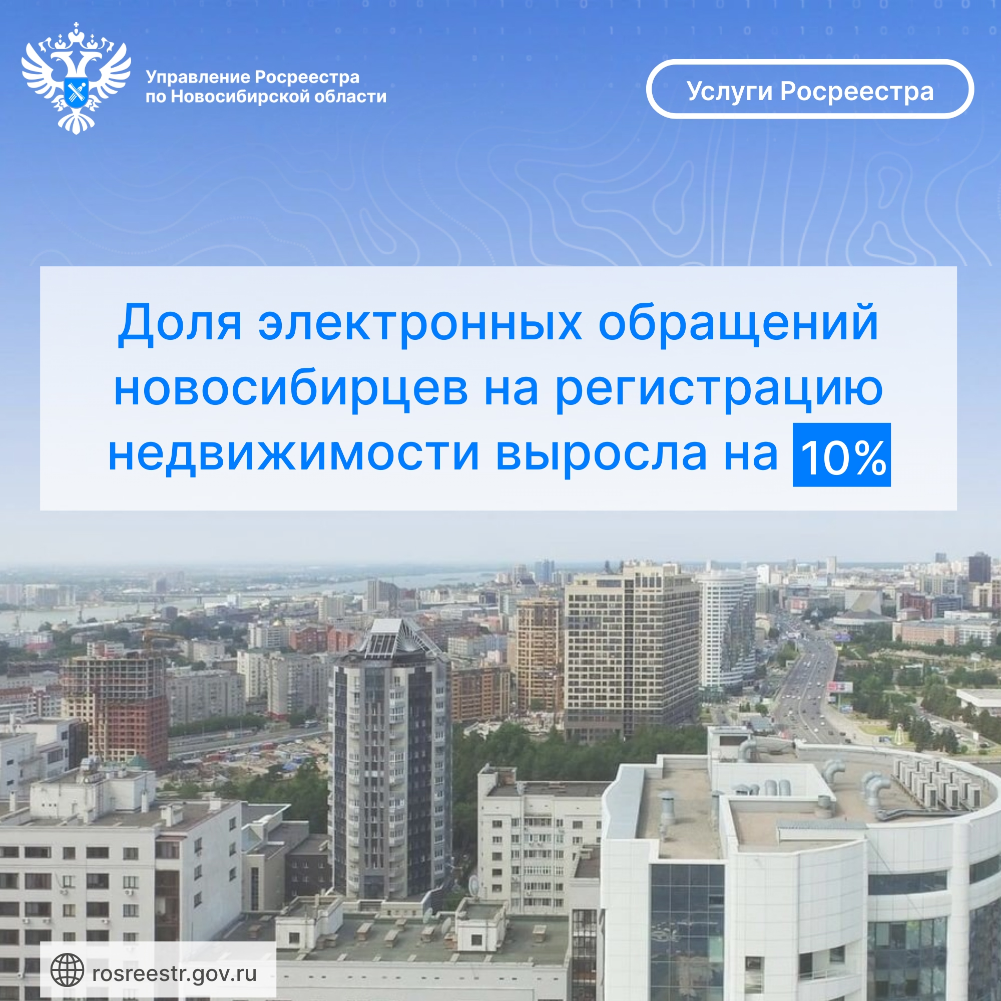 Доля электронных обращений новосибирцев на регистрацию недвижимости выросла на 10%