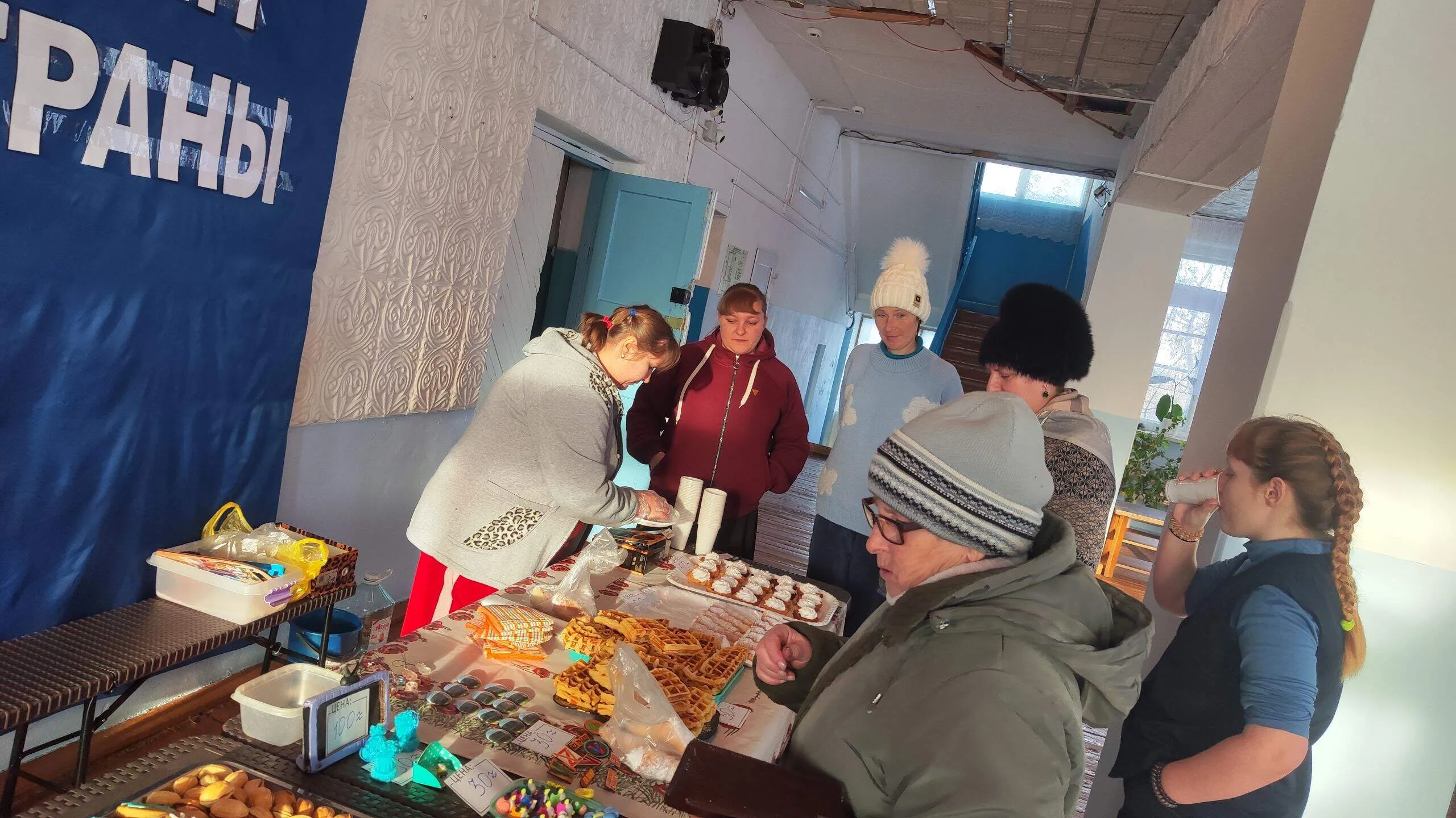 В фойе развернулась ярмарка, предлагая гостям широкий выбор изделий ручной работы, сувениров, вязаных изделий, вкуснейшей домашней выпечки и заготовок местных рукодельниц, мастеров и мастерицами. Посетители могли все это приобрести по символичным ценам, зная, что их покупка внесет вклад в благое дело.