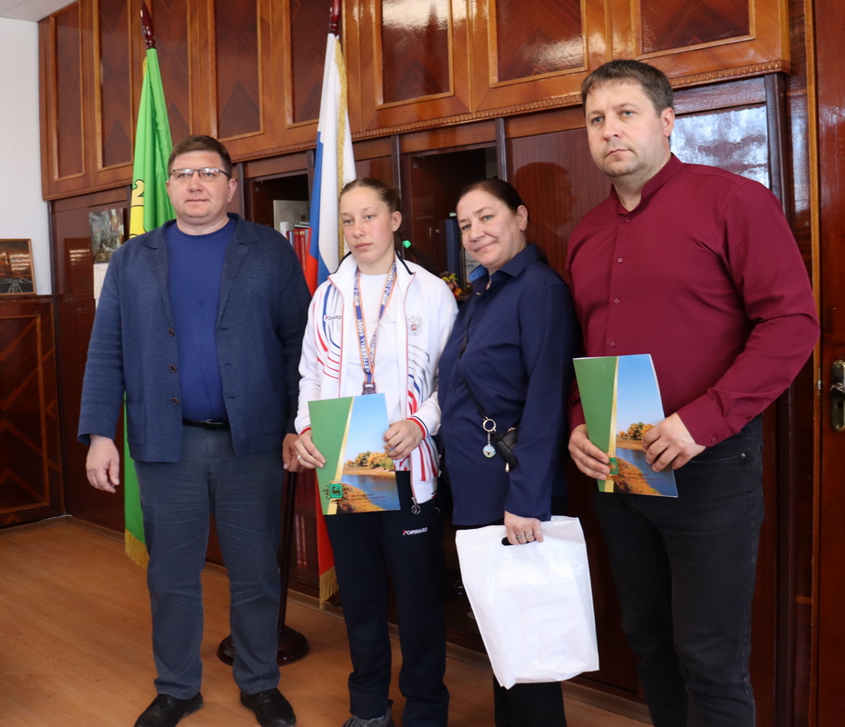 Сегодня в кабинете главы администрации округа А. Ю. Фишера собрались все, кто так или иначе способствовал поездке Т. Погореловой на чемпионат, ее отличным результатам: тренер и мама спортсменки – Алена Владимировна, руководители сельхозпредприятий, индивидуальные предприниматели, оказавшие материальную помощь.