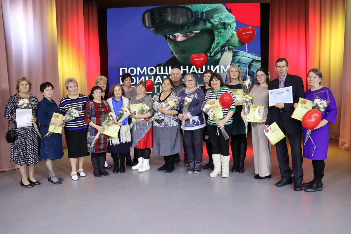 От имени всех жен участников специальной военной операции поблагодарила волонтеров за их помощь, участие и заботу о воинах Александра Николаевна Самкова из села Заречье. Т. С. Крепкая, исполняющая обязанности главы района, и А. Н. Самкова наградили Л. А. Лобкову, Л. В. Мамонтову, Г. Г. Мишневу, И. З Мухомедьярову, Н. П. Медведеву, С. И. Осипкину, А. В. Осипкина, И. В. Половневу. Г. С. Политикову, Л. В. Пинекер, С. В. Плетенкина, Т. В. Васильева.