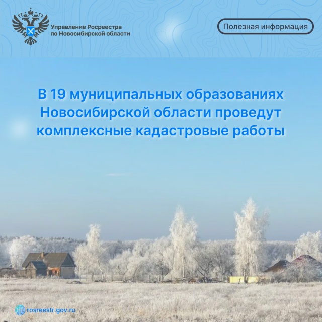 В 2026 году запланировано проведение комплексных кадастровых работ федерального значения (ККР) в 19 муниципальных образованиях Новосибирской области на территории 746 кадастровых кварталов.